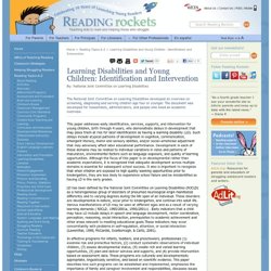LEARNING DISABILITIES AND YOUNG CHILDREN: IDENTIFICATION AND INTERVENTION A Report from the National Joint Committee on Learning Disabilities* October, 2006 This paper addresses early identification, services, supports, ... Visit Document