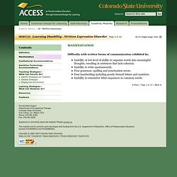 Disability in written language expression can present a significant stumbling block to student academic success (Bernstein & Luttinger, 2006). cal and/or learning disabilities in written expression is an effective means for improving independence in written expression. ... Access Content