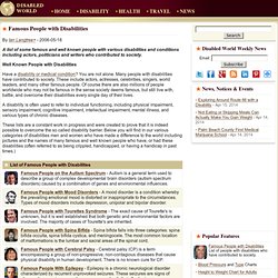 The Disability Rights Movement Famous People with Disabilities Many famous people have had disabilities. Research some of these. Some people think they are not capable of learning and do not understand the simplest of things. Other ... Fetch Document