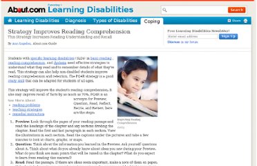 Students with a learning disability do not always maintain or generalize the strategies. improving expository text comprehension of students with learning disabilities: The quality of evidence. Exceptional Children, 77, 135-159. ... Retrieve Document